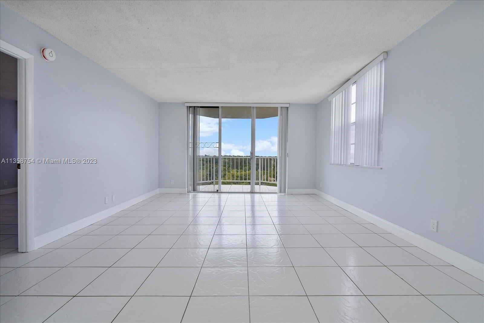 Spacious (780 SqFt) corner apartment in Gateway House featuring a large balcony, tile floor throughout, central a/c, and ample closet space, including a large walk-in closet in the bedroom. Building amenities include secure lobby entry, swimming pool, assigned parking space, and laundry on the floor.