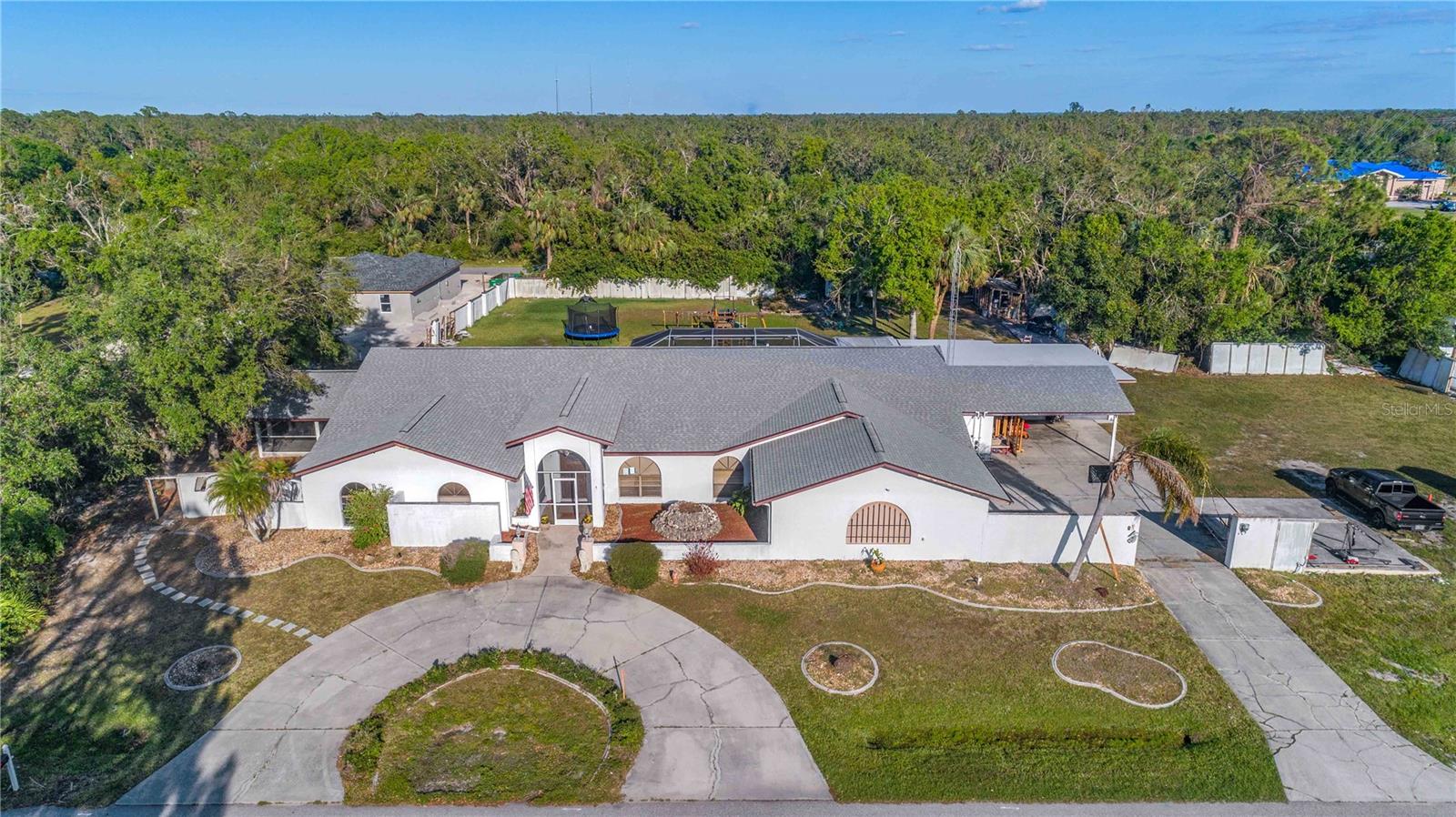 Under contract-accepting backup offers. Looking for some elbow room? This stunning property is located on 5 lots and boasts over 6500 total sqft! The private in law suite is a well-established, 5 star rated, Air B&B generating approximately $3000/month in profit. The new owner can take over the rental profile if desired or save the space for your personal use. Photos of Air B&B are towards end of photo gallery. Upon walking in the main living area, you will instantly be captivated by the large and open feel of the home which can accommodate dozens of guests comfortably. The kitchen overlooks the pool and has granite countertops, solid wood cabinets, and newer appliances. There is a large walk in pantry to the left of the kitchen and a large laundry room to the right of the kitchen. On the south side of the house sits the master suite with it's own seating area and 2 large walk in closets. The master suite bathroom features a jetted tub, walk in shower and dual vanity sinks. A bonus room currently being used as an office is conveniently attached to the master bedroom as well. Just past this office you will find yet another bonus room that is approximately 1000sqft and has private pool access. On the opposite end of the house there is a guest bathroom in the hallway along with the 2nd, 3rd, and 4th bedroom which also has access to a full bathroom with a recently remodeled walk in shower. The in law suite (5th bedroom) features its own private kitchen, full bathroom, and even a mini living room with private pool access. Photos of Air B & B are the last photos in listing. There is a hot tub included in the sale of the property and the lanai has an exterior pool bath as well. Plus, no need to worry about storage space thanks to the 25x30ft garage adjacent to the 2 car carport. This property conveniently sits across the street from a county owned 7 acre park giving you additional privacy. Some updates to the home are still in progress and will be finished prior to closing. The wall surrounding the home was damaged during the storm but damaged sections can be removed prior to closing. The property has a BRAND NEW 2023 ROOF ensuring peace of mind for years to come, and a chicken coop with 9 chickens saving you a small fortune on the current cost of eggs! Copy and paste the following link to view the fully interactive 3D tour https://my.matterport.com/show/?m=Gktj9xAABBT&ts=1&mls=2