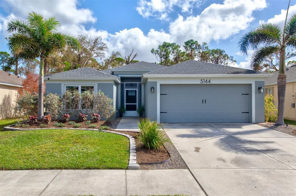 Welcome to this great 3-bedroom, 2-bathroom pool home with a versatile den, perfect for an office or study. Nestled in the highly sought-after Ventura Village community, this home is equipped with numerous recent upgrades, including a new roof, impact windows, HVAC system, water heater, and kitchen appliances—all installed in 2023. The convenience continues with whole-home automated blinds and blackout blinds in the bedrooms. Additional highlights include a 2-car garage, no CDD fees, and low HOA fees, with access to a community pool and clubhouse. This property boasts a spacious open floor plan, ideal for entertaining and everyday living. The well-appointed kitchen features granite countertops, stainless steel appliances, and sleek luxury vinyl floors that flow throughout the main areas. Step outside to your private backyard oasis offering landscape lighting with a screened-in pool and fenced yard with backyard artificial turf. The primary bedroom includes a walk-in closet and a luxurious en-suite bathroom. Enjoy the warmth of wood floors in all bedrooms, adding elegance and comfort to each space.