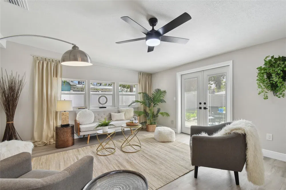Step into this beautifully remodeled residence where timeless charm seamlessly blends with modern luxury. In Flood Zone X, this home boasts a flawless history, having experienced no flooding or damage from hurricanes Helene or Milton, according to the owner. On a picturesque brick-lined street, this exquisite gem offers elegant living spaces while placing you at the center of the action. You'll be just minutes from vibrant historic downtown Gulfport, the Pasadena Golf and Yacht Club, and the pristine sandy beaches and marina of Gulfport. Plus, enjoy the convenience of being less than three miles from St. Pete Beach and a short drive to the lively downtown St. Petersburg. Every detail has been meticulously curated, from the elegant color palette and impact windows to the stunning new luxury flooring that flows seamlessly throughout the home. Modern lighting fixtures and stylish ceiling fans provide comfort and contemporary flair. The sun-soaked family room transitions effortlessly into the newly designed kitchen, a chef's paradise featuring exquisite quartz countertops, a stylish tiled backsplash and new cabinets with sleek hardware, all complemented by stainless steel appliances, ideal for all your culinary adventures. Enjoy your morning coffee or tea at the charming coffee station, and gather for meals in the spacious dining area, complete with a built-in sideboard topped with quartz and a cozy writing nook for added convenience. The stunning primary suite serves as a tranquil retreat, boasting soaring vaulted ceilings that create an open and airy atmosphere, ideal for relaxing in style. This luxurious space features a beautifully appointed en-suite bath with double vanities, a gorgeous step-in tiled shower and a generous walk-in closet for all your storage needs. The fully enclosed Florida room, equipped with hurricane-rated windows, provides a seamless connection to the outdoors through elegant French doors that lead to the terrace, offering lovely views of the expansive backyard. Your outdoor oasis features a spacious, pool-sized lot enhanced by lush new landscaping and mature trees, all surrounded by a new vinyl privacy fence for ultimate seclusion. A convenient double gate provides easy access to your private parking pad, adding to the home's practicality and charm. This lovely home also includes two additional spacious bedrooms and a beautifully updated full bath, providing ample space for family and guests. A newer air-conditioning system ensures comfort throughout the seasons, while a modern electrical system enhances functionality and peace of mind. Eco-conscious features, such as a tankless water heater and a well-fed sprinkler system, contribute to the home’s sustainable appeal. The roof, installed in 2011, has several years of life left, and absence of a flood insurance requirement adds significant value. This property is a haven, thoughtfully designed for those who appreciate a harmonious blend of timeless elegance, modern convenience and peace of mind. Four-point inspection and wind mitigation reports are available to buyer.